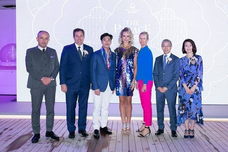 (左起)星夢郵輪「The Palace皇宮」總監Ural Korkmaz、總裁戴卓爾‧布朗先生、雲頂郵輪集團行政副總裁(新船建造)林拱銳先生、英國貴族名媛Lady Victoria Hervey、時尚界權威Noni Ware、雲頂郵輪集團總裁朱福明先生及市場部高級副總裁李鳳霞女士一同出席「The Palace皇宮」私享禮遇升級體驗活動。