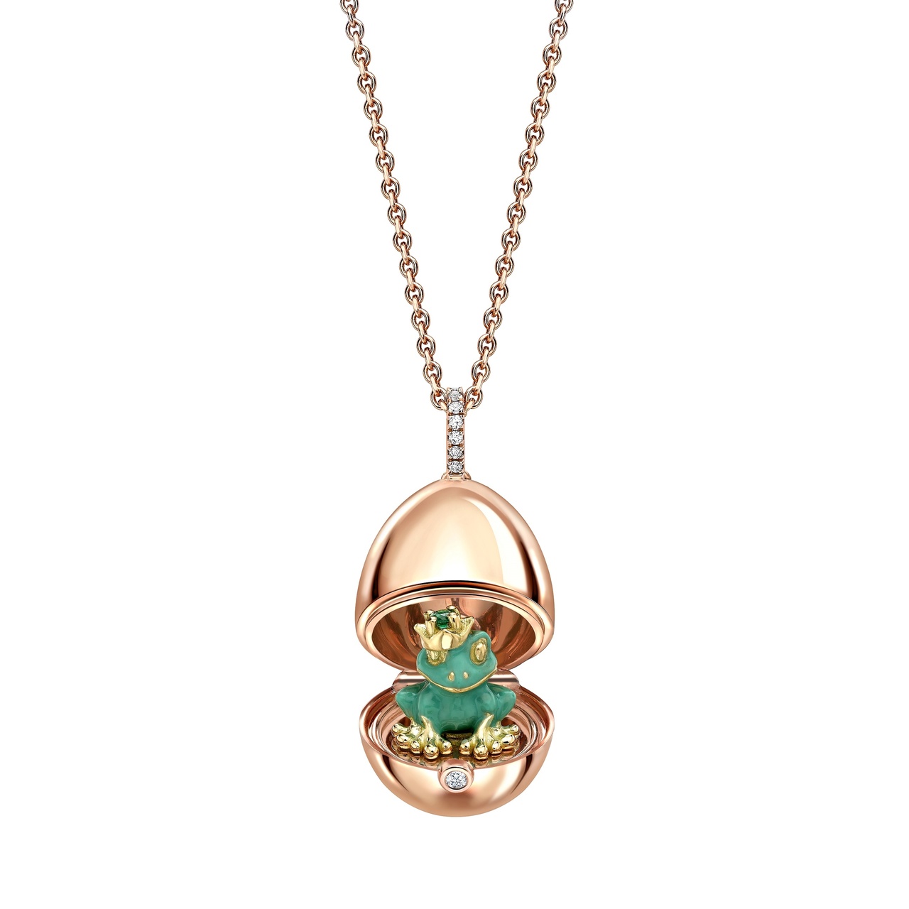 Fabergé蛋形盒式吊墜中內鑲嵌的祖母綠寶石,都是由Gemfields負責任開採、來源可靠的有色寶石。這吊墜正好體現,全球最大的有色寶石生產商與最具標誌性的百年珠寶品牌,兩者之間的完美結合。蛋型設計使人不禁聯想起俄羅斯皇室彩蛋,而把寶石鑲嵌在內,就正如16世紀以來一直被鑲嵌於歐洲各國王室的皇冠、權杖與寶座上的做法,為之增添了一份貴族氣質。