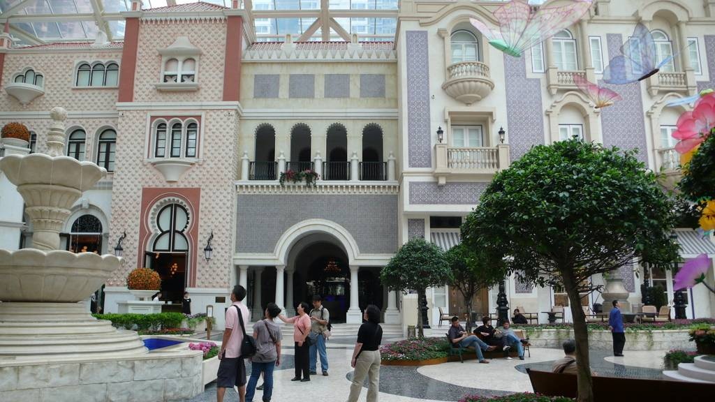 在今年五月一個艷陽天,我坐在該天幕廣場一角,於法國餐廳外面進食。烈日穿透玻璃天幕,照得美國藝術家所設計的110多隻大玻璃蝴蝶栩栩如生,縈繞飛舞於17株巨型玻璃番紅花、海葵、鳶尾花和向日葵叢中。廣場上遊人開心拍照,還有新娘子在拋琇球,環境氣氛皆美不勝收,令我這一法國午餐難忘記。